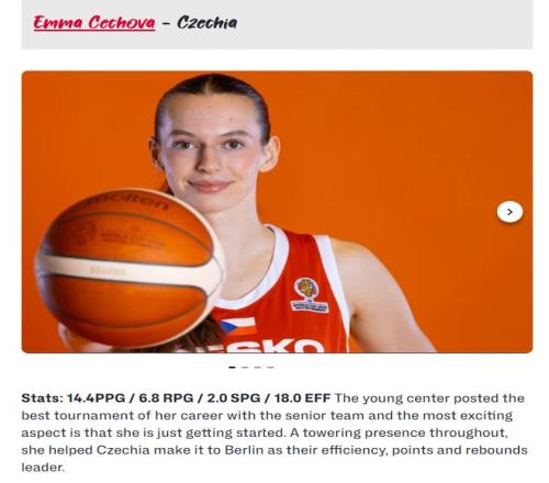 女籃世界杯16支正賽球隊(duì)已經(jīng)產(chǎn)生,武漢賽區(qū)的最佳陣容也出爐:阿萊曼德(比利時)、梅斯曼(比利時)、楊舒予(中國)、海拉達(dá)(馬里)、切霍娃(捷克)。這套最佳陣容出爐后引發(fā)了一些爭議,因?yàn)榻菘岁?duì)的中鋒切霍娃效率遠(yuǎn)不及張子宇。