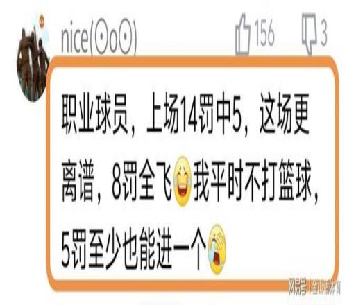 “周琦這罰球0/8,是職業(yè)球員?真是笑話。就這進(jìn)取心,在NBA飲水機都看不明白真是有原因的?!?;“職業(yè)球員,上場14罰中5,這場更離譜,8罰全飛,我平時不打籃球,5罰至少也能進(jìn)一個”“8中0,和街溜子有啥區(qū)別?”……
