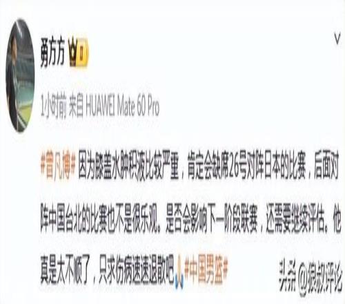 北京時(shí)間2月22日,根據(jù)北京記者“勇方方”發(fā)文:曾凡博因?yàn)橄ドw水腫積液比較嚴(yán)重,肯定會(huì)缺席26號(hào)對(duì)陣日本的比賽...