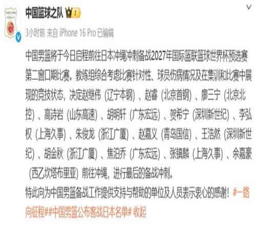 男籃世界杯亞洲預(yù)選賽第二窗口期將至,春節(jié)期間仍然在刻苦集訓(xùn)準(zhǔn)備的中國(guó)男籃,敲定了14人名單,這支隊(duì)伍將前往沖...