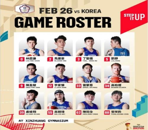中國臺北男籃對陣韓國男籃12人名單出爐: