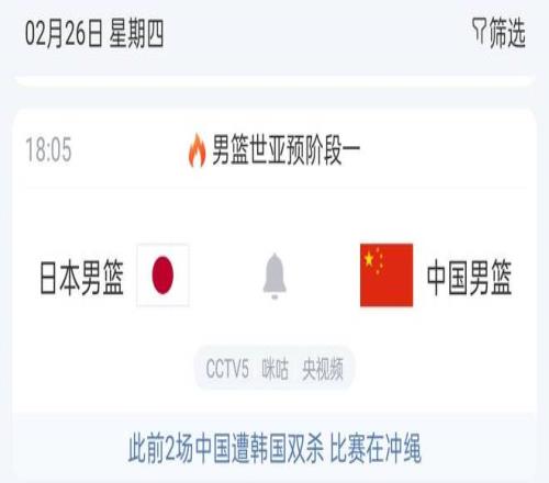 根據(jù)賽程安排,中國男籃將在北京時間2月26日晚上6:05對陣日本男籃,這場比賽CCTV5將進(jìn)行直播,球迷可以按時觀看。而在打完日本男籃后,中國隊很快又將迎來下一個對手—中國臺北男籃,打日本男籃,中國隊必須要贏,打省隊,我們更得贏,否則說不過去。從這次中國男籃的陣容來看,雖然不及亞洲杯時期,但依舊不俗,很多球員的選定都是按照狀態(tài)來選的,比如說胡明軒就因為狀態(tài)不行落選了。