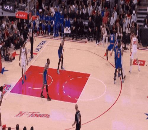 申京和阿杜又二人轉(zhuǎn),申京命中了3分。