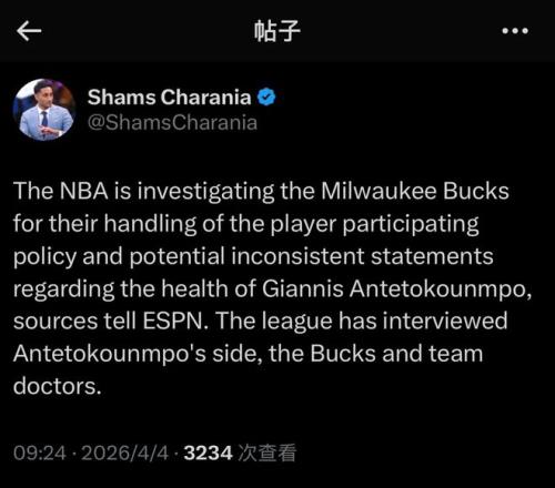 近日字母哥回應(yīng)了NBA調(diào)查一事,表示像他這種級別球員還得公開說自己想上場打球,這種情況前所未有,確實(shí)應(yīng)該查一查。