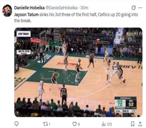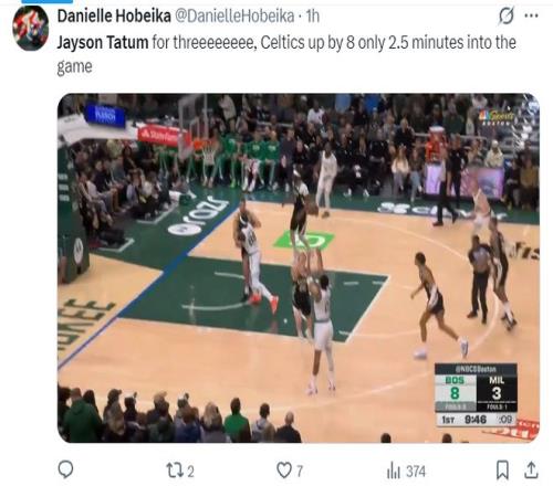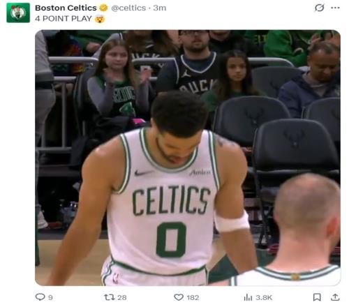 塔圖姆23+11+9杰倫布朗11罰,二輪秀打爆特納,綠軍32分大勝雄鹿
