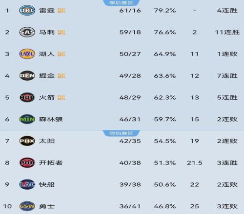 本賽季至今,湖人以50勝27負(fù)高居西部第三,不過只領(lǐng)先第四的掘金1個勝場。