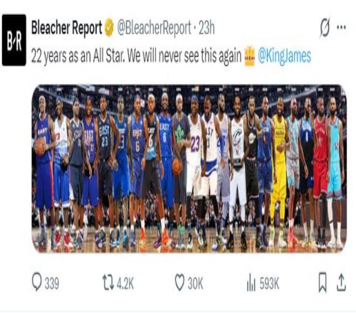 美媒BR寫道:連續(xù)22年入選全明星,這樣的球員以后不會(huì)再有了。