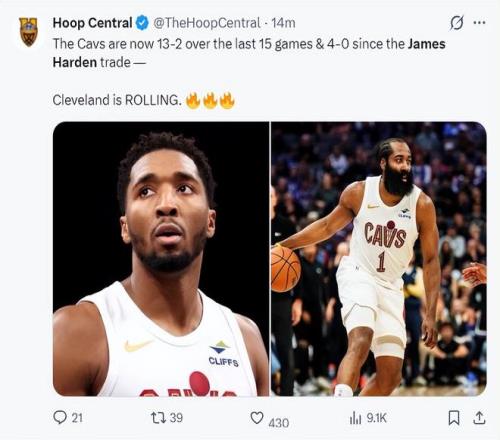 騎士隊最近的15場比賽贏下了其中的13場,哈登到來后又是一波4連勝,克利夫蘭騎士隊真的一躍成為奪冠熱門之一,如果今夏還能以底薪簽下勒布朗-詹姆斯,下賽季的騎士或許將成為聯(lián)盟最強球隊。