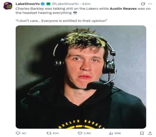在賽后巴克利不斷地在ESPN的直播間詆毀湖人,說湖人根本不是奪冠球隊(duì)。里夫斯則在直播間回應(yīng):我根本不在乎別人的看法,每個(gè)人都有發(fā)表自己想法的機(jī)會(huì)。