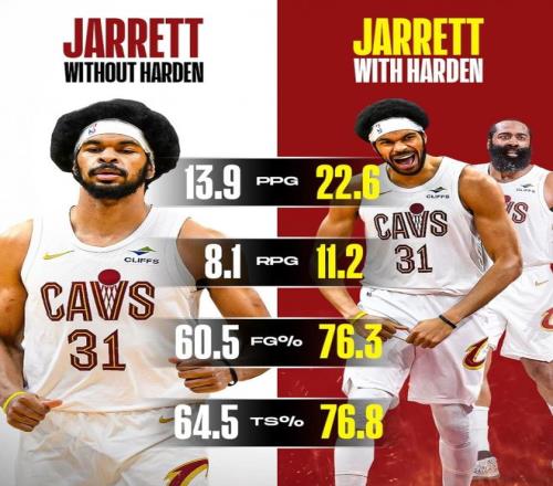 而阿倫,可謂是哈登加盟后的最大獲益者。數(shù)據(jù)不會說謊,哈登加盟騎士前,阿倫場均13.9分8.1板,命中率60.5%,而哈登來了以后,哈登數(shù)據(jù)直接上漲到22.6分11.2板,投籃命中率76.3%!這是什么概念,命中率、產(chǎn)量,都是直線上升啊!可以說,阿倫之前是正兒八經(jīng)的藍(lán)領(lǐng),而如今,已經(jīng)完全變成高級貨了,甚至打成“核武器”了!