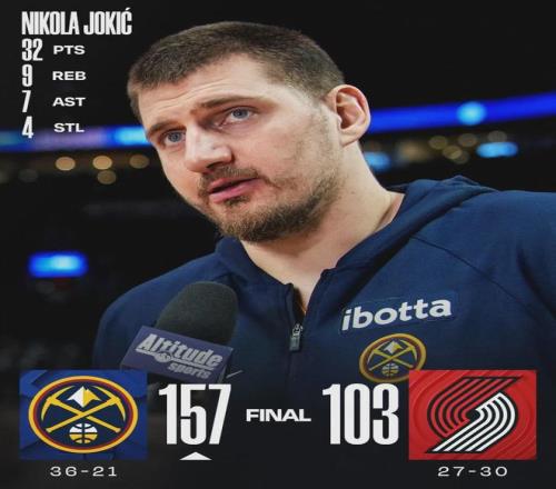 掘金36勝21負重返西部第3,領先火箭0.5個勝場。開拓者27勝30負仍居西部第10,依然落后快船0.5個勝場。開拓者核心阿夫迪亞賽后表示:“掘金昨天輸了,今天他們想證明一些東西。這就是NBA運作方式,沒什么大驚小怪的?!?/p>