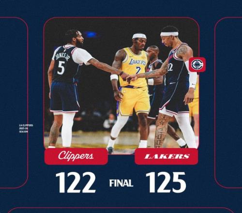 快船在一度落后湖人16分的情況下完成過(guò)反超,末節(jié)兩隊(duì)也鏖戰(zhàn)至最后一刻,詹姆斯終場(chǎng)前8秒出現(xiàn)了致命失誤,好在巴圖姆三分絕平不中湖人才涉險(xiǎn)過(guò)關(guān)。這場(chǎng)比賽快船的科林斯、倫納德都傷退,詹姆斯13分11助攻,里夫斯29分6籃板,東契奇38分11助攻8個(gè)三分。這場(chǎng)勝利讓湖人繼續(xù)排在西部第五。