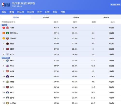 東部的競爭也很大,活塞穩(wěn)坐第1,綠軍也是霸占了第2的位置,而騎士隊,則是戰(zhàn)績被尼克斯反超,掉到第4位!