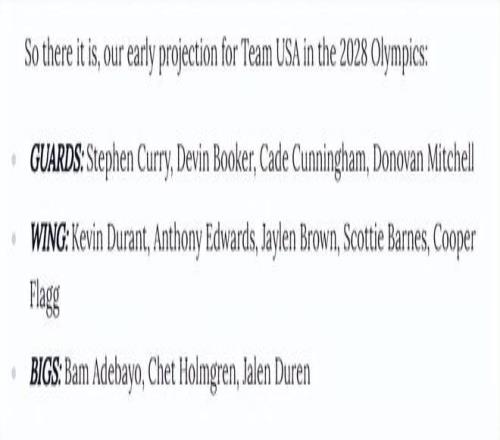2028美國(guó)男籃早期預(yù)測(cè)名單