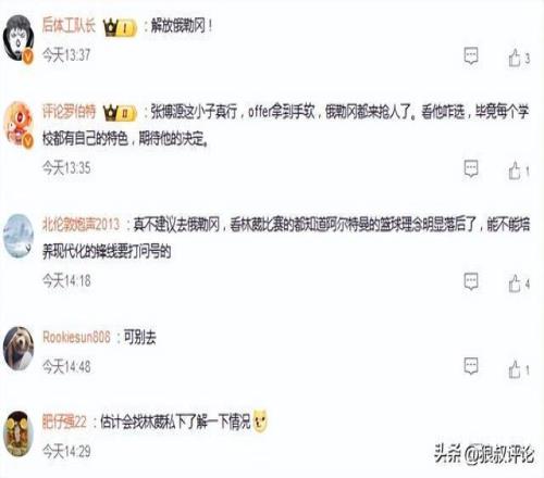 媒體人“海jun的藍”發(fā)文點評:張博源收到俄勒岡大學的offer,大家覺得以林葳目前的境遇和在俄勒岡的容錯率,這對張博源來說是一個好選擇嗎?俄勒岡大學主教練相對保守和傳統(tǒng)的打法有利于張博源未來的發(fā)展嗎?
