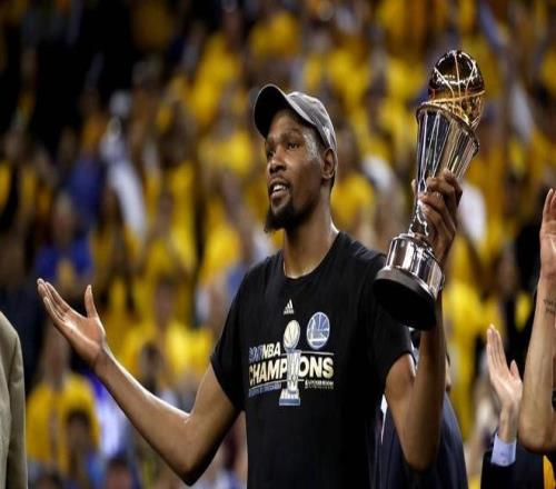 而在總決賽中,憑借場均35.2分、8.2個(gè)籃板和5.4次助攻的豪華數(shù)據(jù),杜蘭特也是成功力壓斯蒂芬·庫里,獲得了生涯的第一座總決賽MVP。緊接著,他在2018年的總決賽中,又一次拿到了28.8分、10.8個(gè)籃板、7.5次助攻的全面數(shù)據(jù),幫助勇士隊(duì)橫掃擊敗了騎士隊(duì),完成了兩連冠,而他又一次成為了那一年的總決賽MVP,讓全聯(lián)盟感受到了五星勇士隊(duì)的統(tǒng)治力。