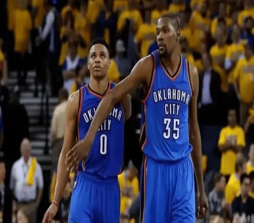 然而,到了最后的3場比賽,雙少卻出現(xiàn)了不少的問題。杜蘭特一直以來的最大問題,也就是體能不足的缺陷,在這3場比賽被無限放大,雖然場均仍然可以貢獻(xiàn)29.7分,但投籃和三分命中率分別降低到了42.3%和31.3%,尤其是在第6場比賽中,他總計才31投10中,直接葬送了雷霆隊終結(jié)本輪系列賽的最佳機(jī)會。