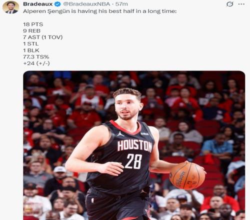 此役阿爾佩倫-申京表現(xiàn)非常出色,首節(jié)9分鐘里他就已經(jīng)3中3拿到6分4籃板4助攻,次節(jié)9分鐘里更是6中3+三分1中1拿到12分5籃板3助攻,半場(chǎng)18分9籃板7助攻1搶斷1蓋帽1失誤,真實(shí)命中率77.3%,正負(fù)值+24。國(guó)王的內(nèi)線群根本無(wú)法限制他分毫。