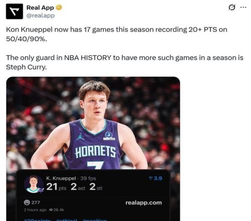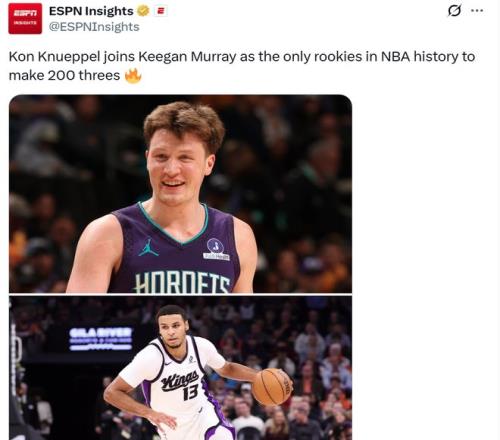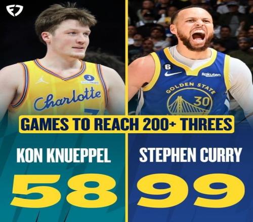 憑借這樣的表現(xiàn),克努佩爾一口氣刷新6大紀(jì)錄,不僅創(chuàng)造NBA歷史最快,還比肩三分第一人庫里。