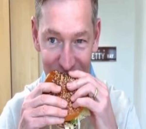 面對網友調侃他吃漢堡像在“受刑”,Kempczinski 解釋那只是童年習慣?!拔覌尲医毯車溃瑥男【徒逃遥鹤炖镉袞|西的時候不要說話?!彼寡?,“視頻里我確實該豁出去了,嘴里塞滿東西也要說話。”