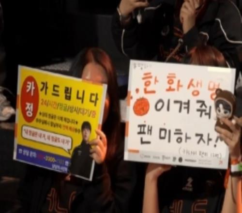 電競(jìng)體育4月10報(bào)道 LCK第二賽段今日HLE對(duì)陣BFX,導(dǎo)播給到觀眾席Kanavi應(yīng)援牌,內(nèi)容如下: