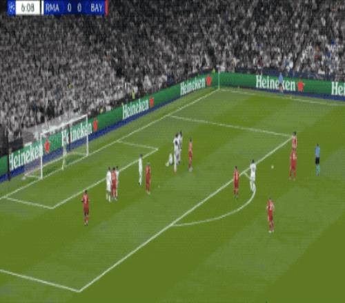 拜仁慕尼黑的持續(xù)進(jìn)攻制造威脅,第9分鐘,拜仁慕尼黑獲得絕佳機(jī)會,于帕梅卡諾拿出后衛(wèi)的腳法,一腳踢呲,這樣的射門晃倒了皇家馬德里門將盧寧,卡雷拉斯門線救險(xiǎn)。