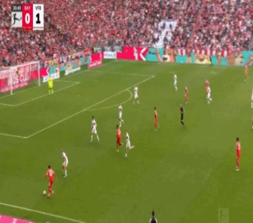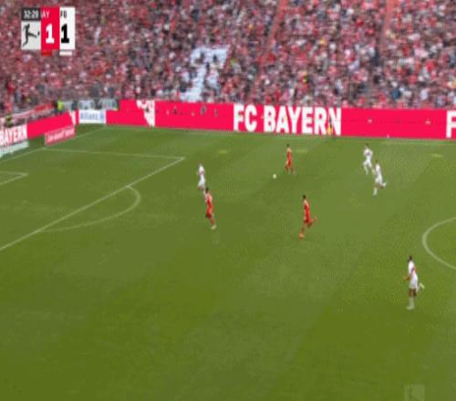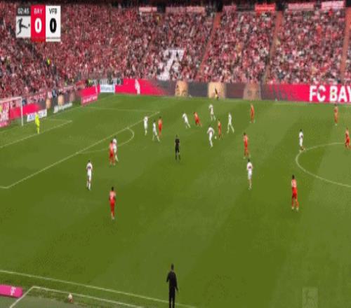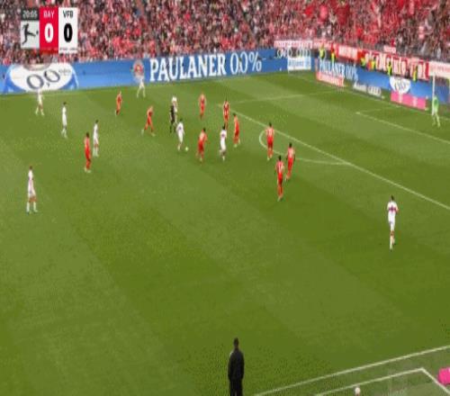 第31分鐘,穆西亞拉左路1V2突入禁區(qū)橫傳門前,格雷羅包抄打空門得手,拜仁1-1斯圖加特。