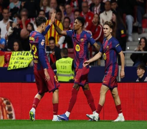比賽開始后第13分鐘,亞馬爾右路組織反擊,費爾明斜側(cè)殺出低射被穆索拒之門外;第27分鐘,尼古拉斯-岡薩雷斯左路貼地斜塞,巴埃納順勢接應(yīng)后立馬橫敲,后點無人盯防的格列茲曼大好機會下用力過猛踢高了;第34分鐘,巴薩打出精彩的傳切配合,亞馬爾右路分球后立馬前插禁區(qū),奧爾莫不停球分到中路,費爾明順勢一做,亞馬爾挑射擊中了橫梁彈出!第38分鐘,朗格萊后場精準(zhǔn)長傳,巴薩造越位失敗,小西蒙尼前插停球抽射上角得手,0:1!