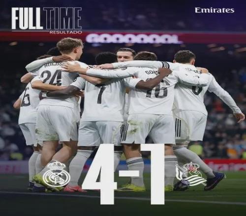 4-1!西甲第24輪,皇馬在伯納烏輕松拿下皇家社會,先賽一場以60分登頂,豪取聯(lián)賽8連勝。阿諾德的助攻、巴爾韋德的遠(yuǎn)射、維尼修斯的梅開二度,一切看起來都那么完美。