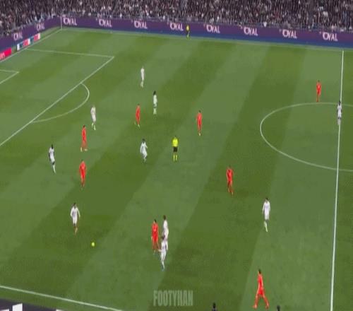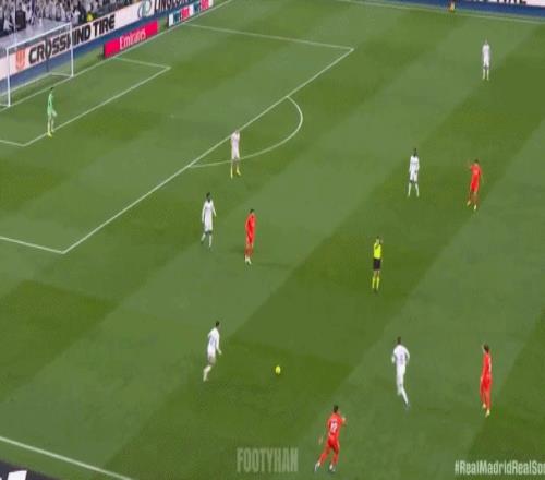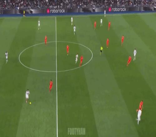 阿諾德這種大斜線轉(zhuǎn)移,簡潔、明了,能瞬間發(fā)起反擊(如下動圖)。這樣的傳球,會不會讓你想起莫德里奇、克羅斯?