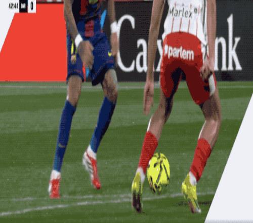 第43分鐘,拉菲尼亞的射門打穿防守球員的小門,皮球擊中立柱,彈了出來。