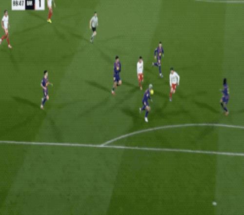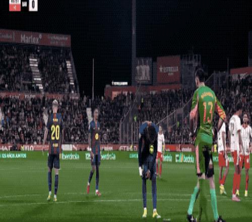 下半場開始后,巴薩繼續(xù)猛攻,第58分鐘,亞馬爾將球傳到后點,拉菲尼亞的射門打在林孔的頭上出了底線,拉菲尼亞無奈苦笑。