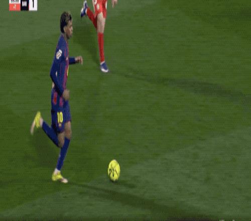 之后的25分鐘,巴薩占據(jù)了場面上的絕對主動。第43分鐘,拉菲尼亞的射門打穿防守球員的小門,可惜皮球擊中立柱。