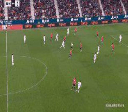 90’ 莫羅送出直塞,勞爾·加西亞小角度破門。此球起初被判越位,VAR隨后介入,主裁確認(rèn)進(jìn)球有效,奧薩蘇納2比1領(lǐng)先皇馬。