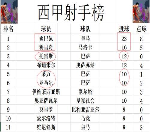 射手榜方面,姆巴佩23球領跑,穆里奇16球排在第2。托雷斯今天替補登場沒有進球,還是和布迪米爾12球并列第3。萊萬,亞馬爾同樣沒有進球,依然和伊格萊西亞斯,奧亞薩瓦爾10球并列第5。
