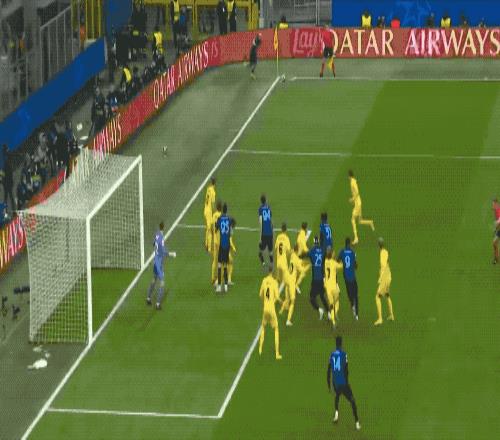 第36分鐘,布魯日獲得角球,奧多耶斯的頭球,將比分扳平。