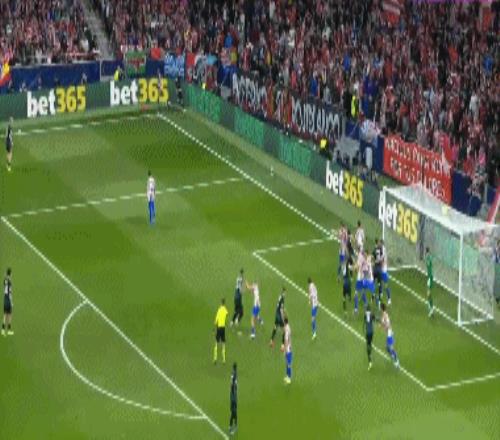 第36分鐘,布魯日角球機會,奧多涅斯頭球頂進空門,馬競1-1布魯日