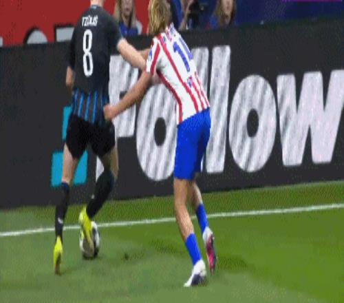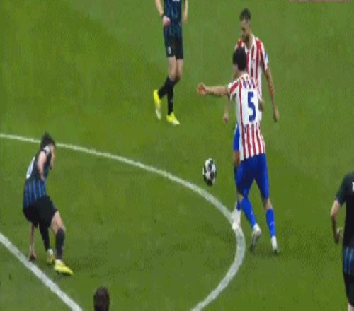 第13分鐘,西蒙尼禁區(qū)內(nèi)倒地,裁判觀看VAR后沒有判點