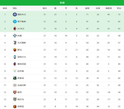 北京時(shí)間4月7日凌晨,意甲第31輪,真正進(jìn)入“刺刀見(jiàn)紅”的階段。法布雷加斯率領(lǐng)的科莫客場(chǎng)0-0戰(zhàn)平烏迪內(nèi)斯,繼續(xù)霸占積分榜第四;尤文圖斯主場(chǎng)2-0拿下熱那亞,依舊為歐冠席位苦苦追分;亞特蘭大3-0客場(chǎng)完勝萊切,后者依舊排在倒數(shù)第三,保級(jí)壓力山大;那不勒斯1-0絕殺AC米蘭,波利塔諾打入全場(chǎng)唯一進(jìn)球,這樣一來(lái),國(guó)際米蘭以7領(lǐng)跑積分榜。