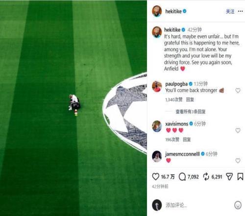 【官方公告】利物浦足球俱樂部確認(rèn),?;倏嗽庥隽藝?yán)重的跟腱傷勢(shì)。這位前鋒在周二安菲爾德對(duì)陣巴黎的歐冠比賽上半場(chǎng)因場(chǎng)地打滑摔倒,隨后被迫離場(chǎng)。后續(xù)掃描檢查確認(rèn)其跟腱斷裂。因此,?;倏藢⑷毕銟凡抠惣臼S啾荣?,也無法代表法國(guó)隊(duì)參加今年夏天的世界杯。俱樂部將在適當(dāng)時(shí)候發(fā)布進(jìn)一步更新,雨果將得到利物浦全體成員的全力支持。