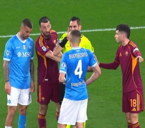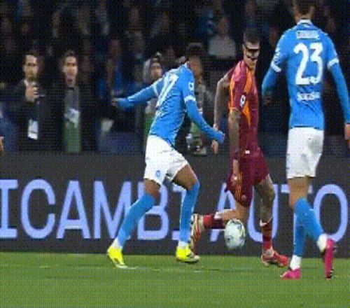 上半場開始僅僅7分鐘,那不勒斯就率先丟球。羅馬后場攔截后快速反擊,隨后他們在右路把球橫傳送到門前,馬倫拍馬趕到,最終抽射破門,客隊1-0領先。半場結(jié)束前,斯皮納佐拉打進一腳世界波,幫助那不勒斯扳平比分。