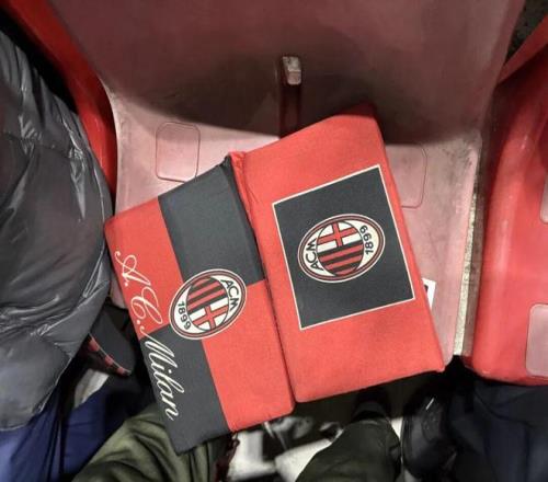 我左右兩邊的球迷體型都偏大,我被夾在中間,與他們一起組成了一個(gè)“三明治”。這導(dǎo)致我拍攝照片和視頻都變得十足費(fèi)勁,但也很溫暖。被兩個(gè)壯漢固定在塑料座椅上,屁股需要經(jīng)受比較大的考驗(yàn)。我旁邊的那位球迷就比較有經(jīng)驗(yàn)了,專(zhuān)門(mén)帶了一個(gè)帶有AC米蘭隊(duì)徽的座墊。