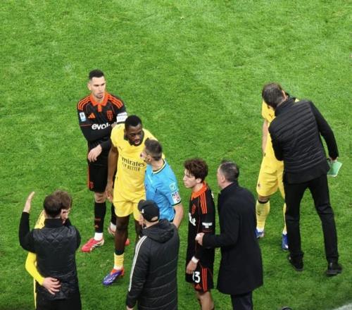 隨后的比賽,1比1的比分并未被改寫(xiě),但也不缺少精彩的故事。第80分鐘,AC米蘭主教練阿萊格里因?yàn)閷?duì)法布雷加斯不依不饒,被紅牌罰下。起因是法布雷加斯在場(chǎng)邊拽住了準(zhǔn)備搶球的薩勒馬克爾斯。