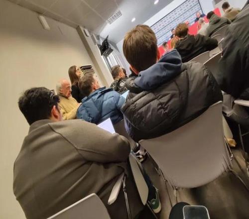 我不知道意甲是不是不允許記者拍視頻,還是記者們并不需要拍攝短視頻這種內(nèi)容。但是,我必須入鄉(xiāng)隨俗,選擇不拍攝視頻素材,僅匆匆拍下了法布雷加斯出席發(fā)布會(huì)的一張照片留作紀(jì)念。