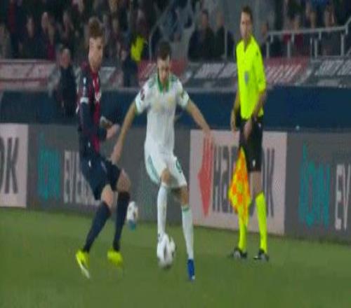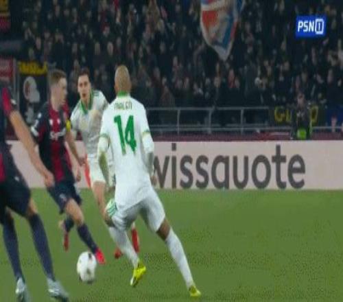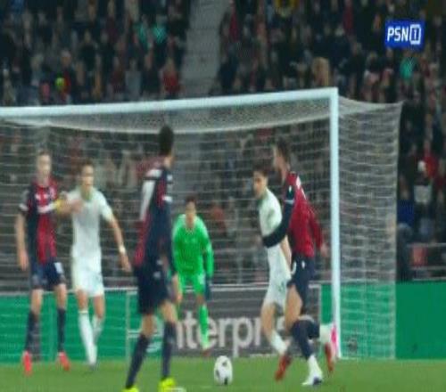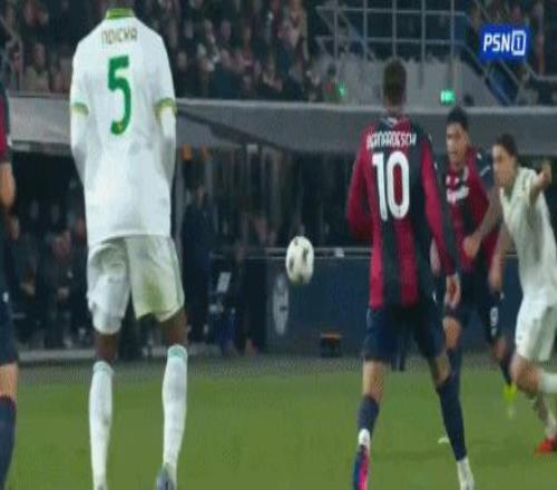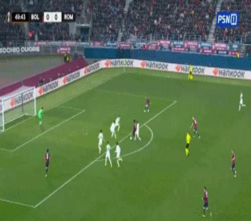 第71分鐘,馬倫助攻,佩萊格里尼破門扳平比分,博洛尼亞1-1羅馬