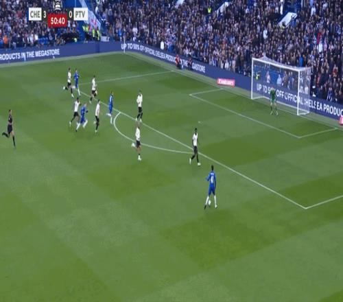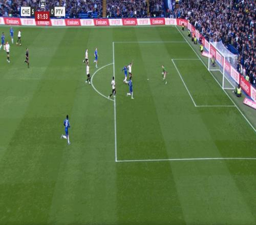 第82分鐘,加納喬中路打門(mén)擊中立柱,埃斯特旺門(mén)前補(bǔ)射破門(mén)!切爾西6-0