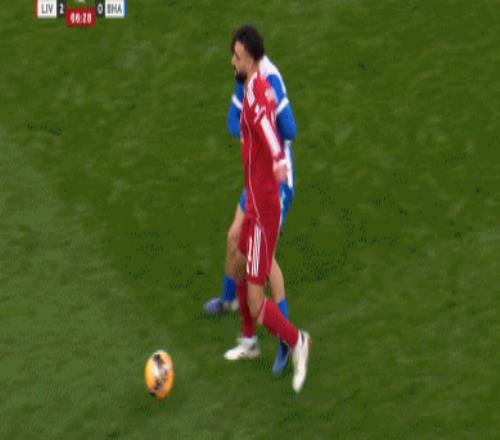 第74分鐘,薩拉赫超車強突,三笘薰將球破壞