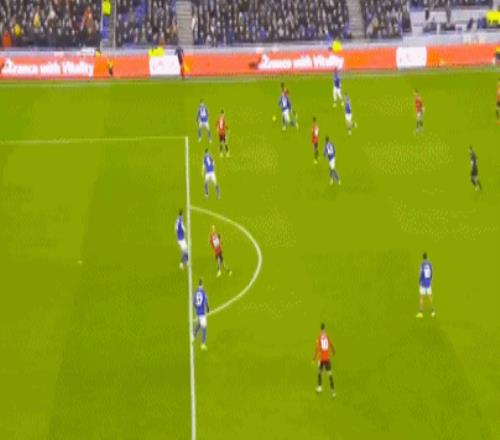 隨后曼聯(lián)的進(jìn)攻一波接一波。達(dá)洛特凌空抽射擦柱而出,姆伯莫低射偏出立柱,B費(fèi)弧頂爆射高出橫梁。半場(chǎng)下來(lái),曼聯(lián)控場(chǎng)優(yōu)勢(shì)明顯,卻始終差一腳終結(jié)。埃弗頓則在防守反擊中尋找機(jī)會(huì),但節(jié)奏始終被壓制。基恩、布蘭斯韋特拼命封堵,皮克福德多次出擊穩(wěn)定后防。