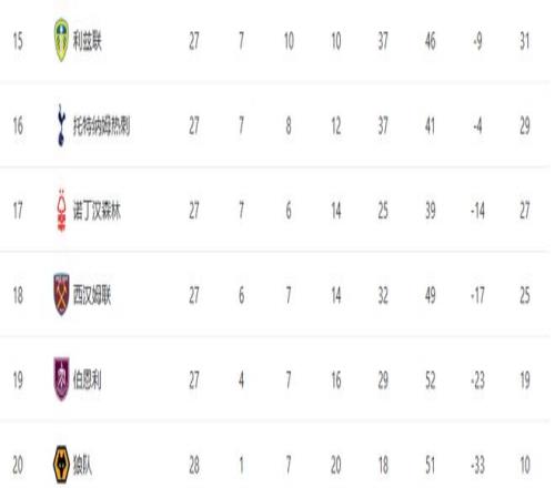 第四,僅落后第3名維拉3分,拿下歐冠席位越來(lái)越有戲。