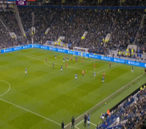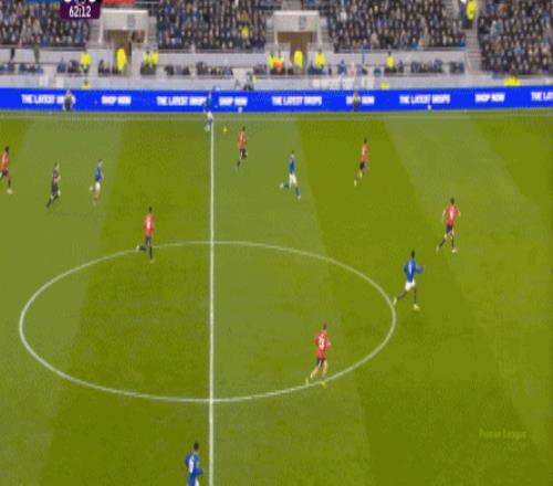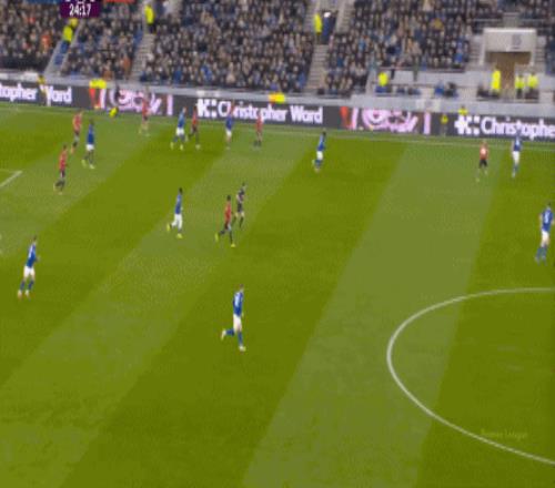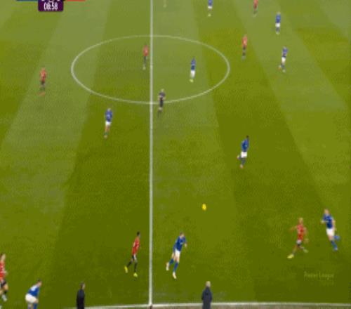 因為,從55到70分鐘,埃弗頓幾乎將曼聯(lián)壓在了半場范圍內(nèi),他們用相當(dāng)長線條的方式來發(fā)展自己的進攻: